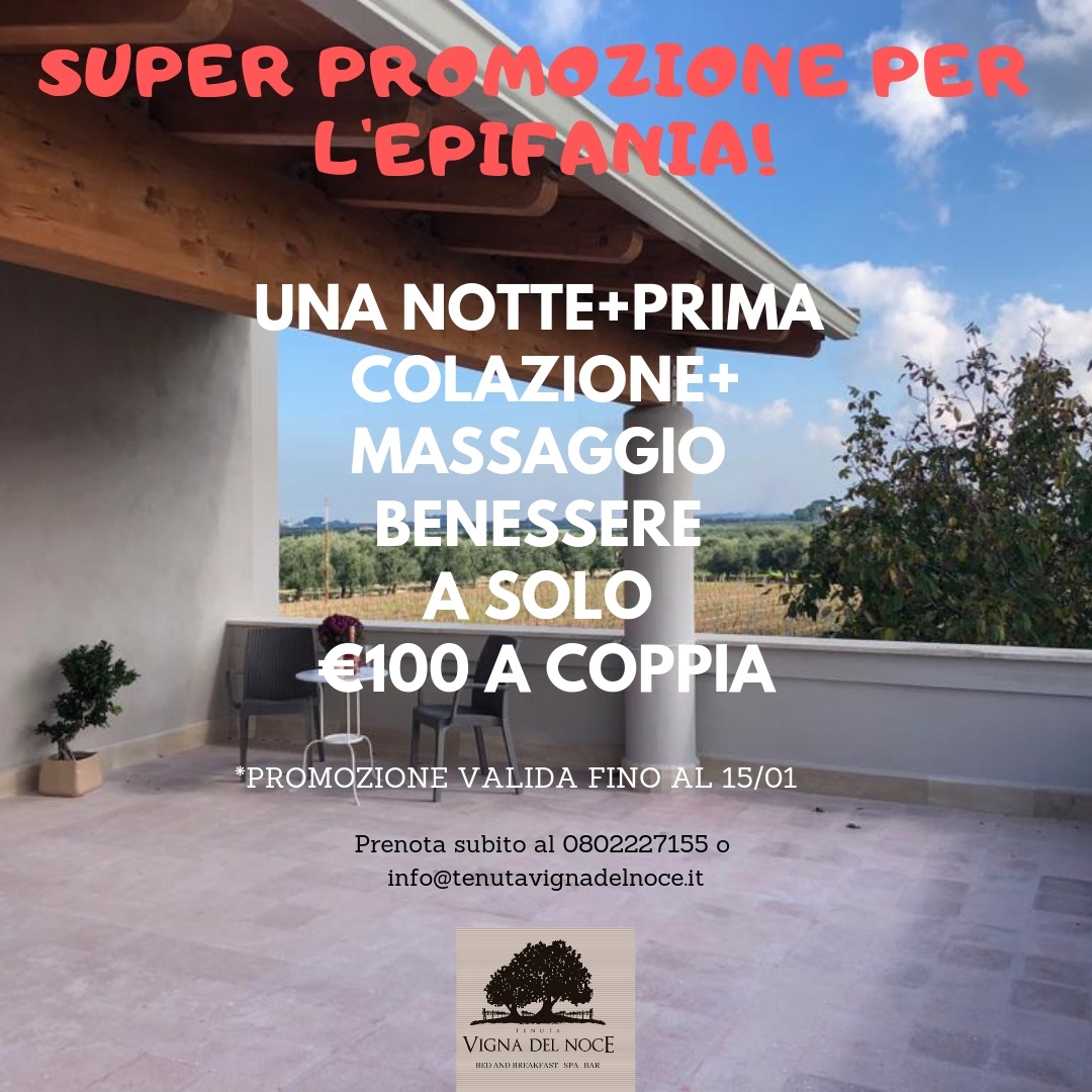 Passa le tua Epifania nel migliore dei modi! Soggiorna a Tenuta Vigna del Noce, dove la tua mente potrà svagare tra i suoni e i profumi della natura! Contattaci per maggiori informazioni sulla SUPER PROMOZIONE!